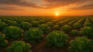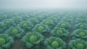 広大な土地で白菜を育てているイメージです。
